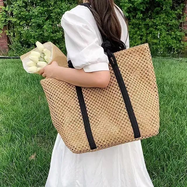 Fashion Solid Color Large Capacity Woven Tote Bag