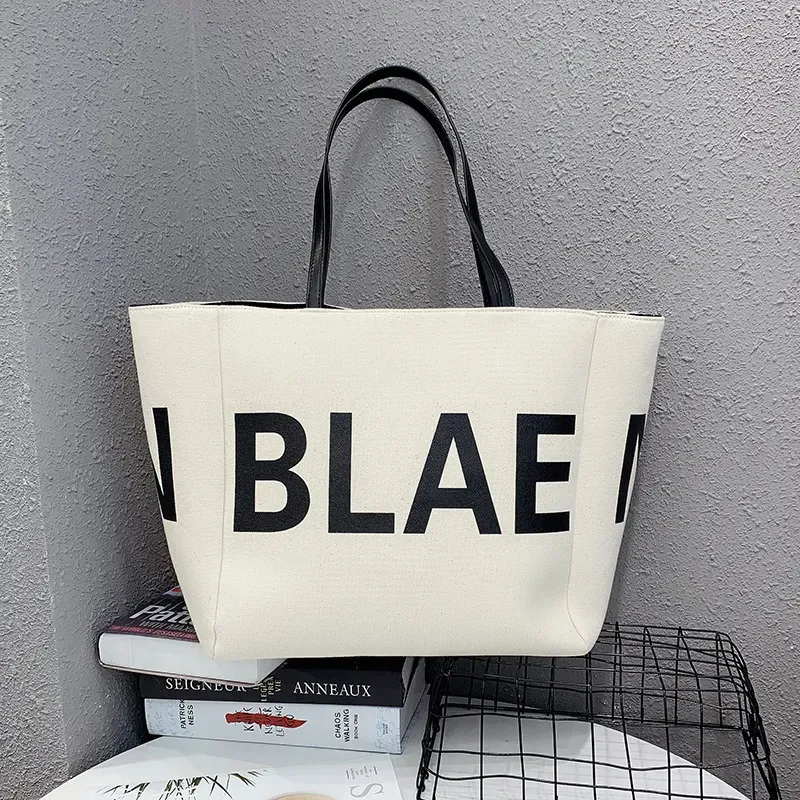 Embroidered Women Casual Design Solid Color Letter Pattern Canvas Large Capacity Shoulder Handle Tote Bag