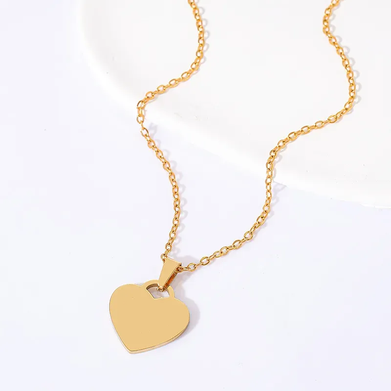 Wholesale Fashion Simple Custom Laser Engraving Heart Shaped Pendant Stainless Steel Necklace