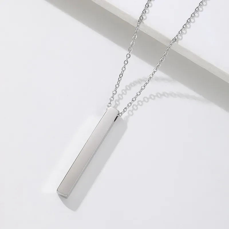 Wholesale Fashion Simple Solid Color Stainless Steel Wishing Cubic Column Custom Laser Engraving Long Necklace