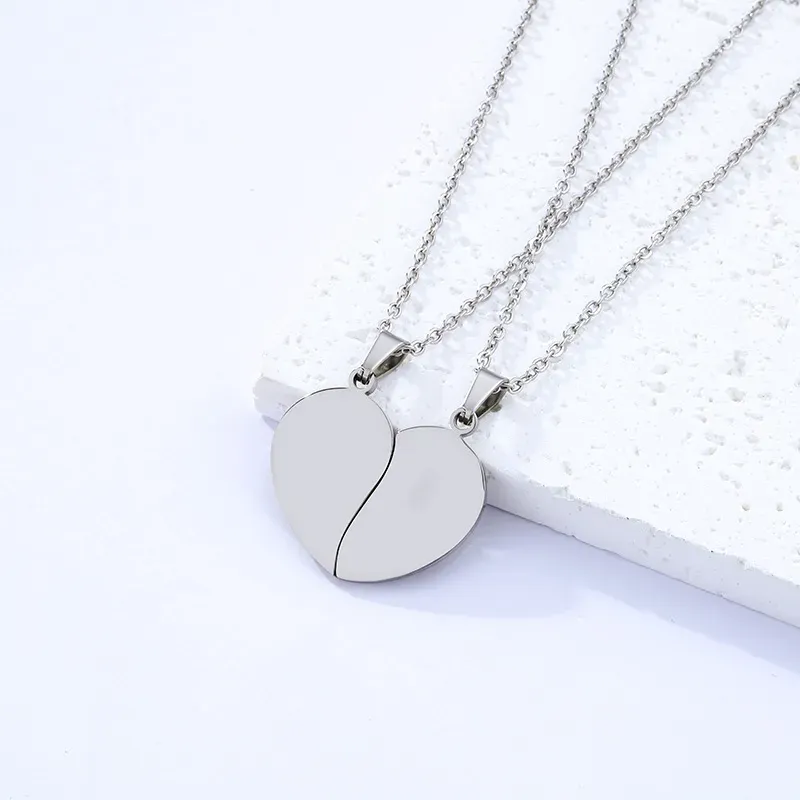 Wholesale Fashion Creative Custom Laser Engraving Stainless Steel Heart-Shaped Blank Necklace