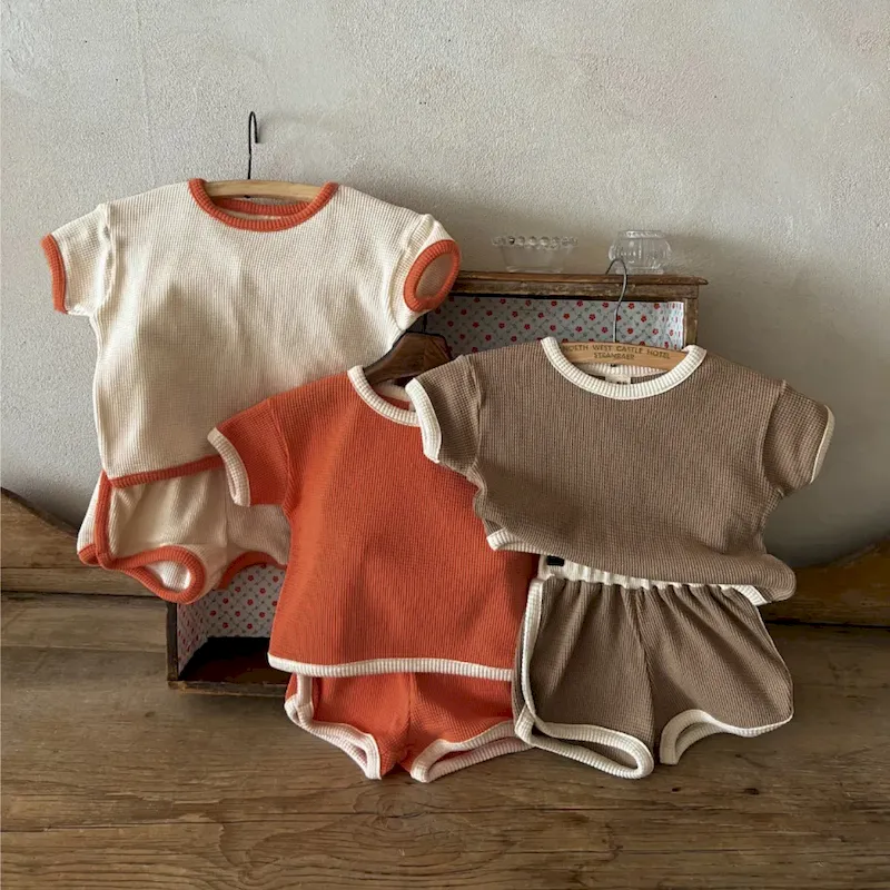 Wholesale Baby Fashion Color Contrast Short Sleeve Top And Shorts Two-Piece Set