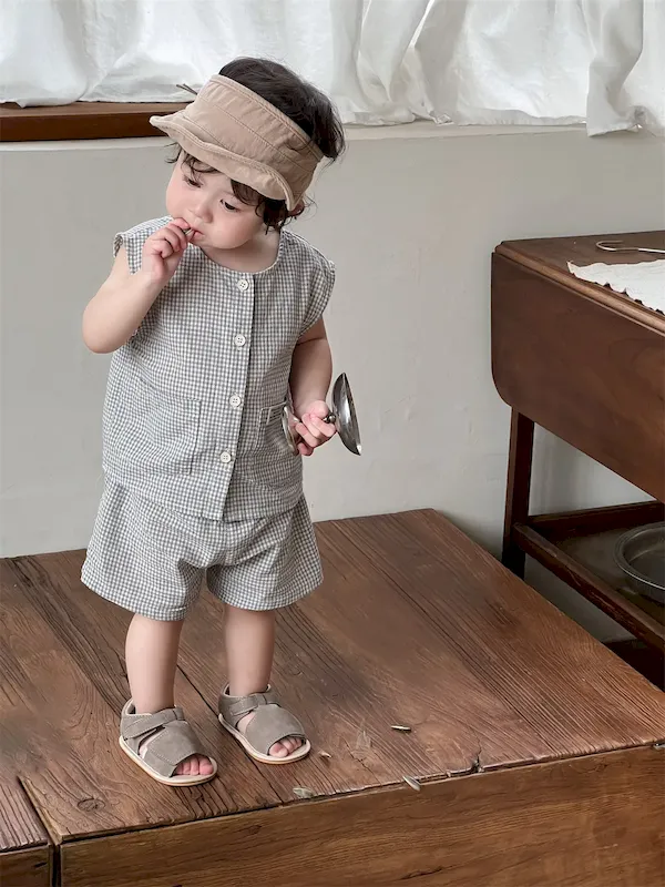 Wholesale Baby Fashion Casual Plaid Sleeveless Tank Top Loose Shorts Two-Piece Set