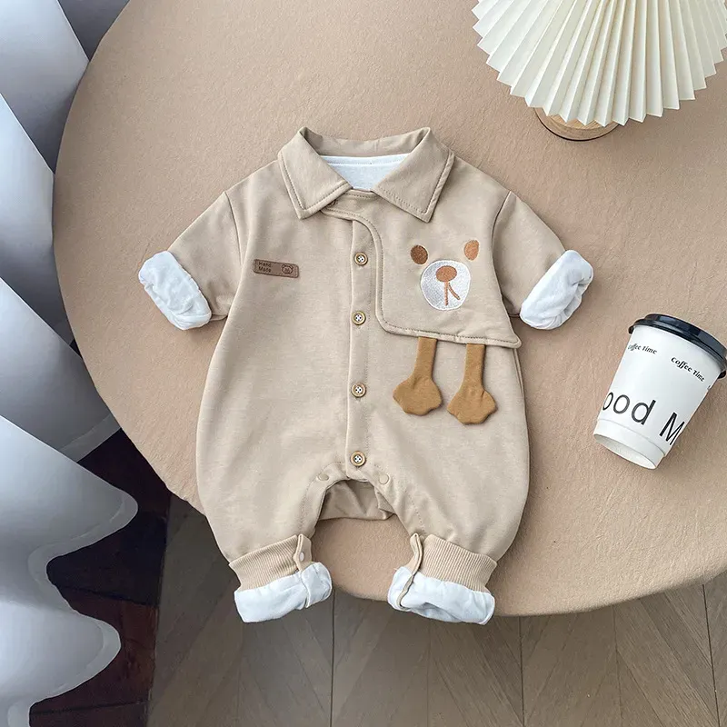 Wholesale Baby Boy Long Sleeve Handsome Cartoon Bear Rompers