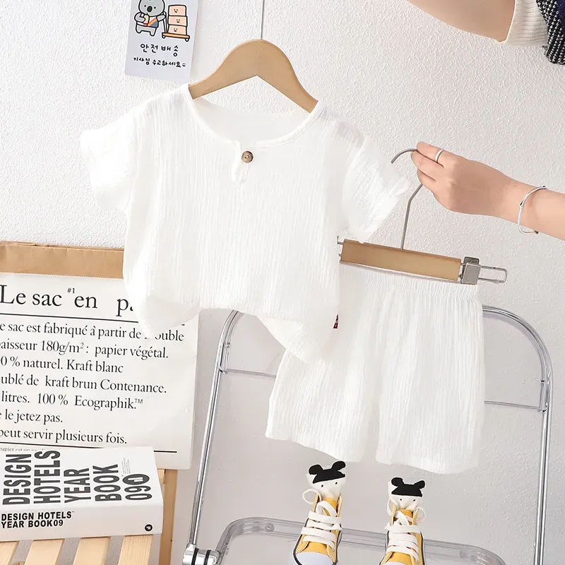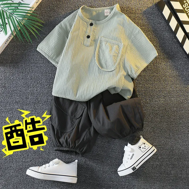 Wholesale Boy Casual Solid Color Short-Sleeve T-Shirt Loose Shorts Two-Piece Set