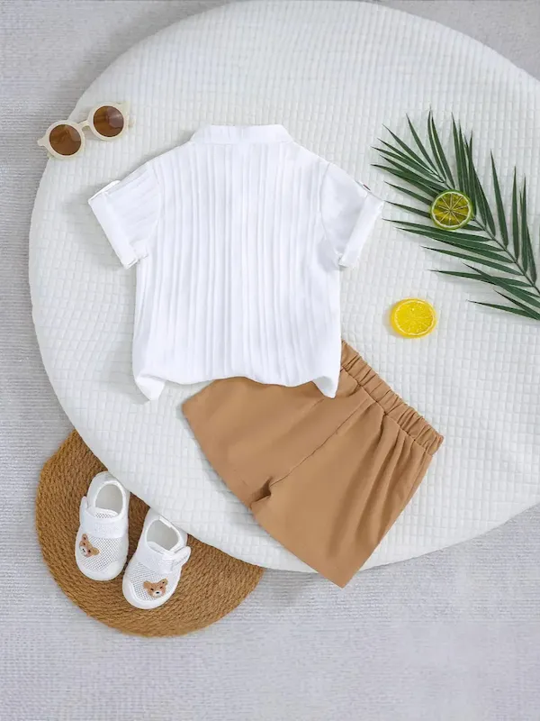 Wholesale Baby’S Boy Casual White Vertical Stripe Short Sleeve Blouse Loose Shorts Two-Piece Set