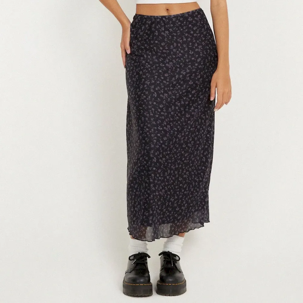 Summer Women Fashion Mesh Floral Print High Waist Skirt