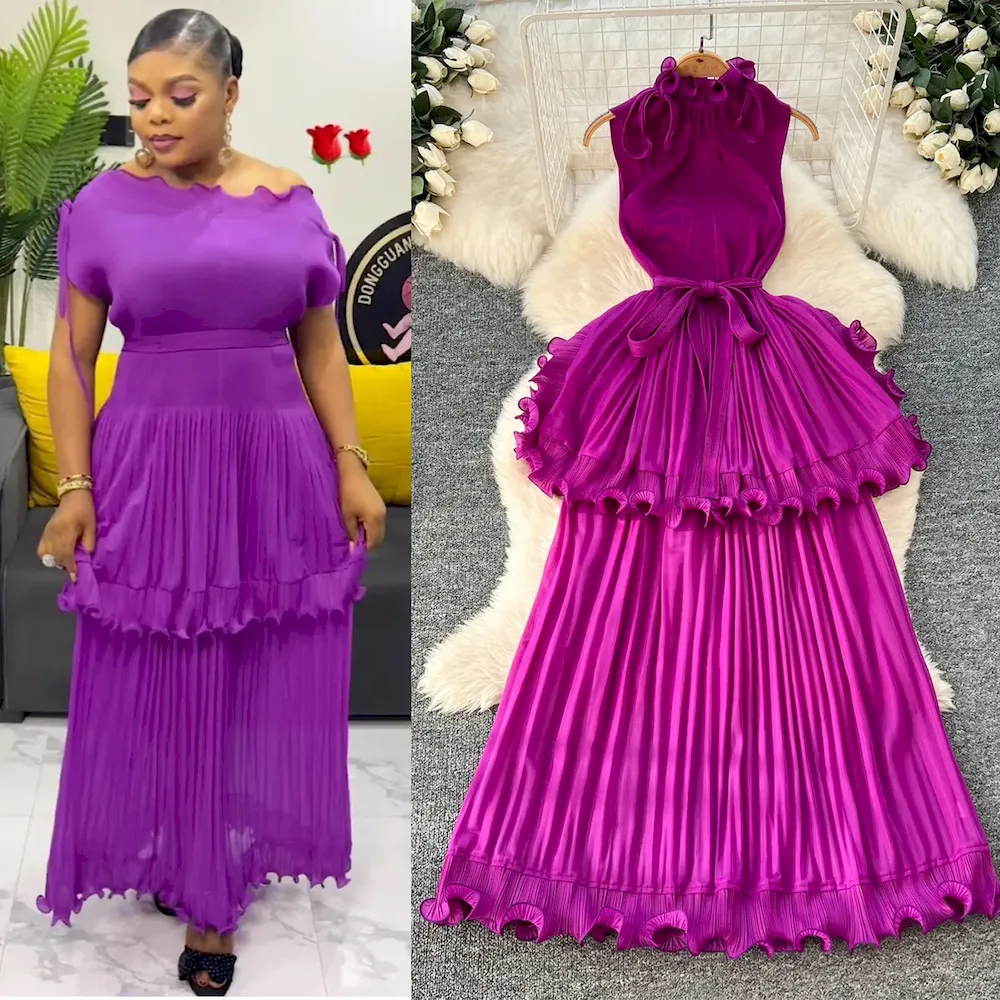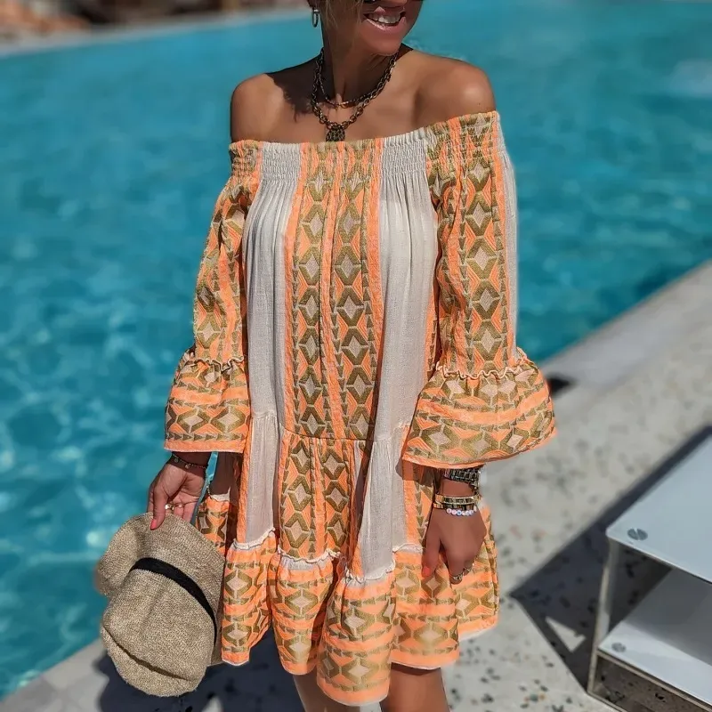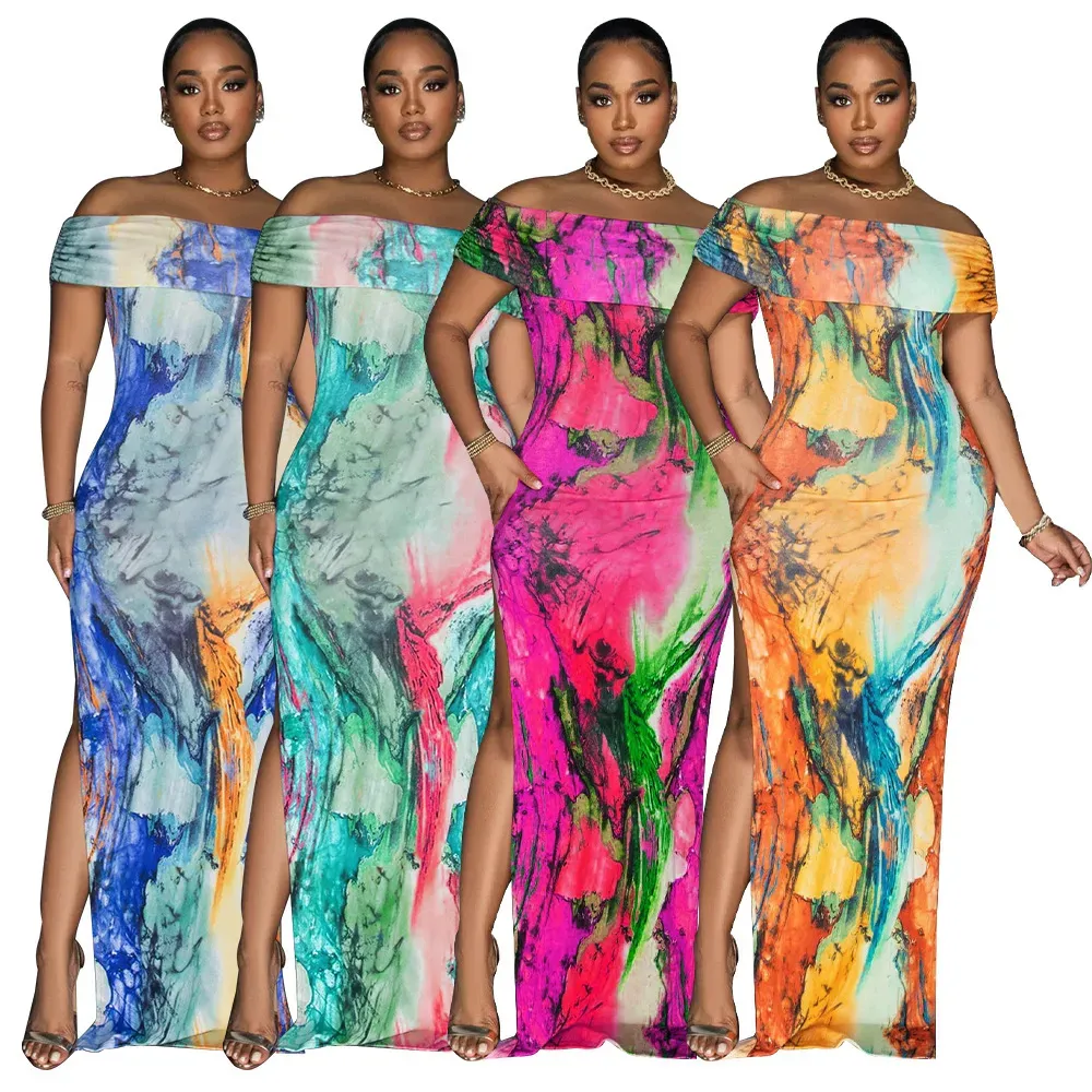 Fashion Women Off-Shoulder Sexy High Split Tie Dye Print Maxi Dress