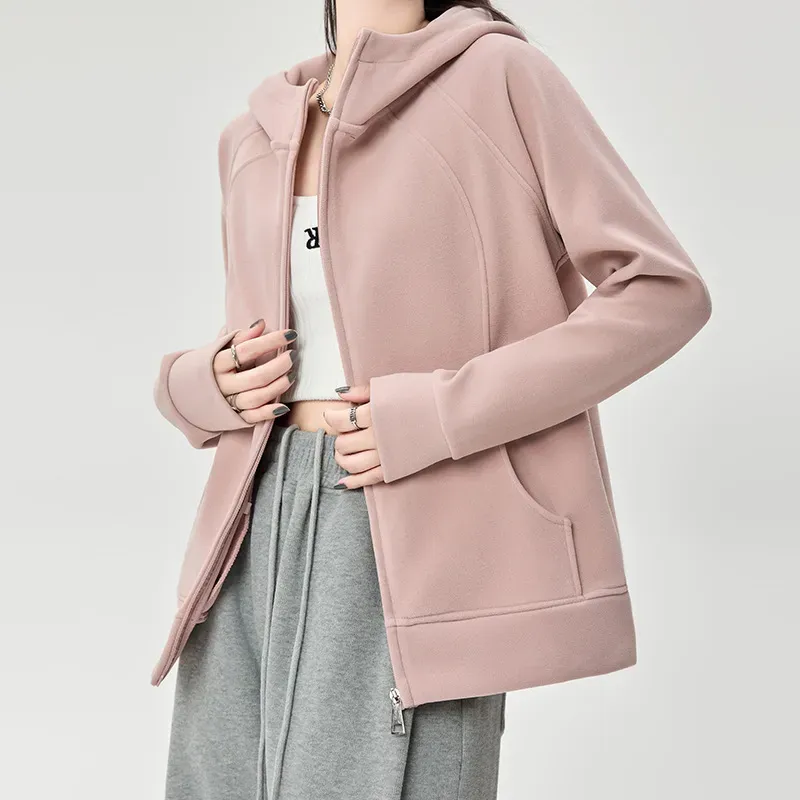 Women Casual Loose Solid Color Thickened Cardigan Hoodies