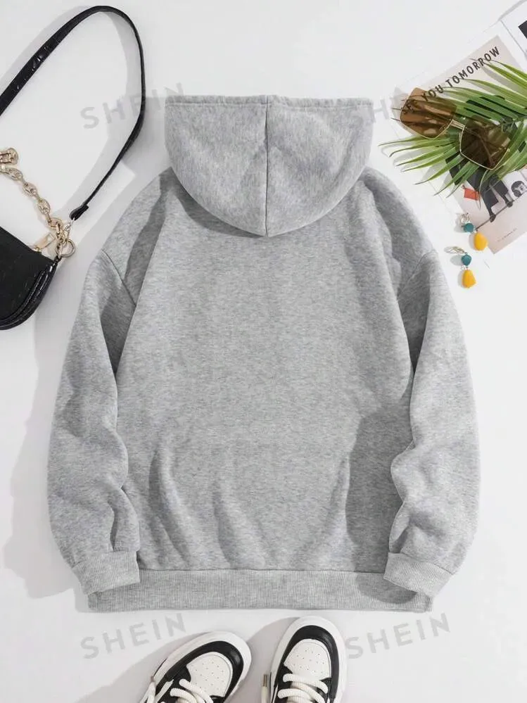 Women Casual Letter-Print Loose Hoodie