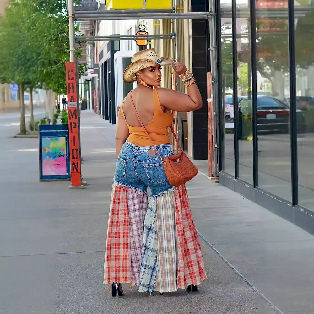 Women Fashion Casual Denim Stitching Wide-Leg Pants