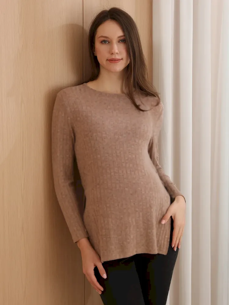 Pregnant Women Casual Solid Color Velvet Round Neck Long Sleeve Split Top