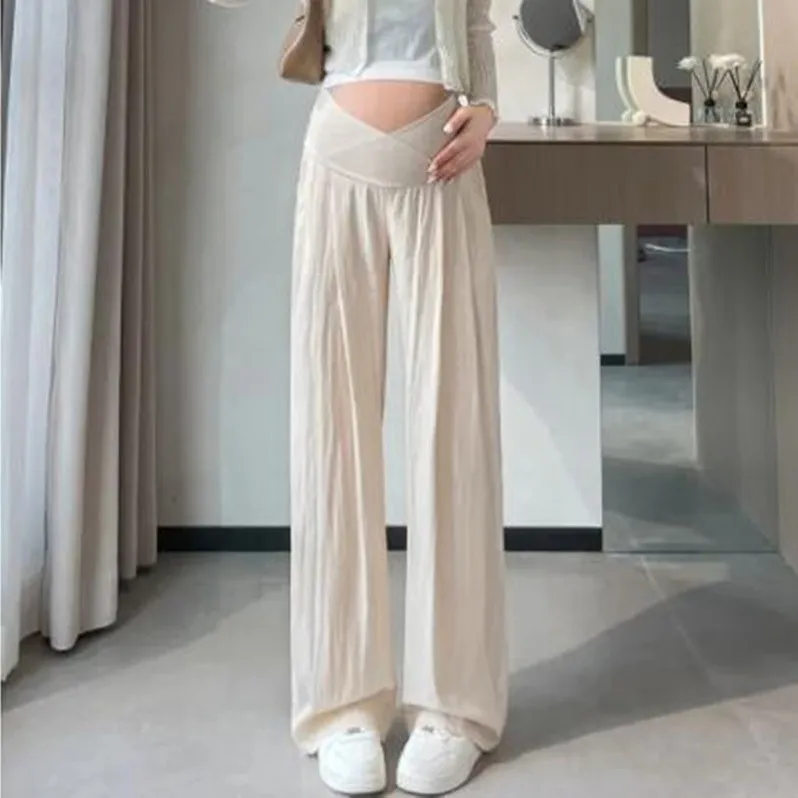 Pregnant Women Casual Solid Color Thin High-Waisted Wide Leg Pants
