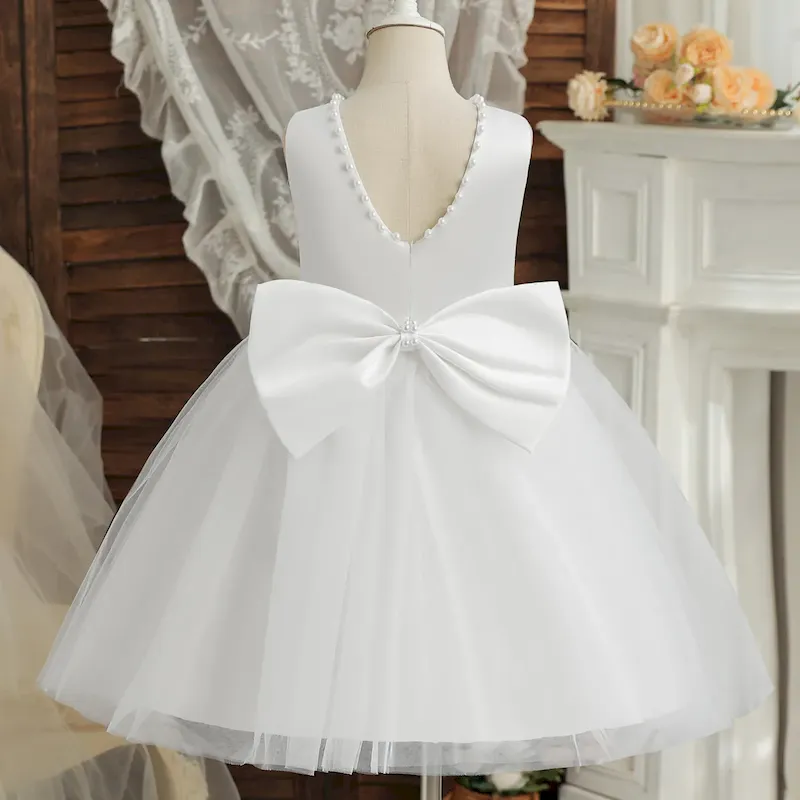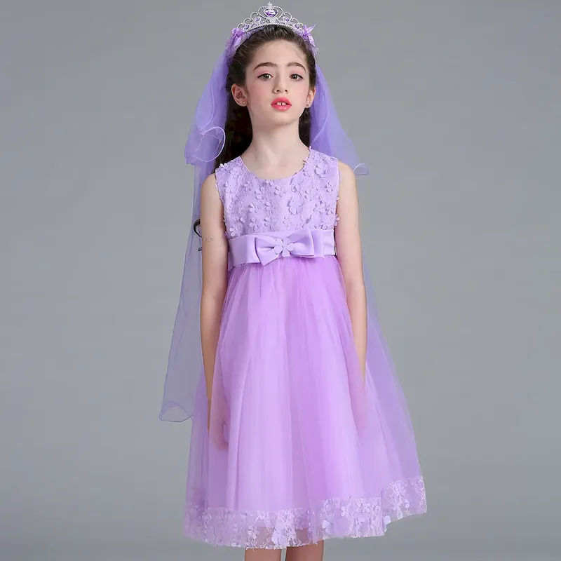 Wholesale Kids Girls Fashion Elegant Solid Color Lace Bowknot Mesh Sleeveless Princess Dress