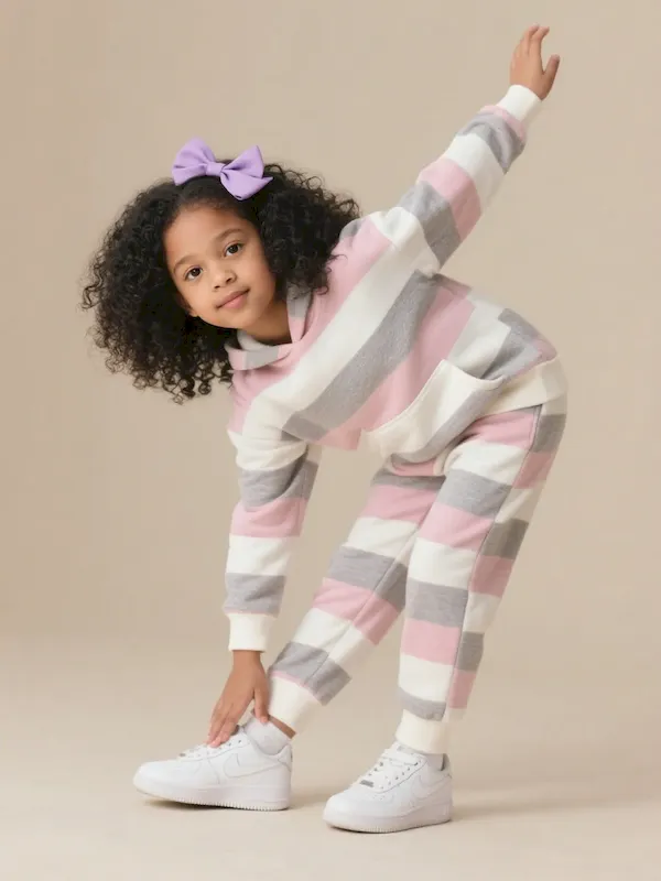 Wholesale Kids Girls’ Fashion Casual Autumn Stripe Long-Sleeve Hoodies Slim Fit Pants Two-Piece Set